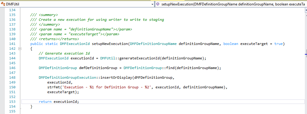 The DMFUtil class is a great code collection to be aware of in case you ever find yourself trying to kick off DMF import/exports via x++, or are just curious about how some of that entity stuff works.